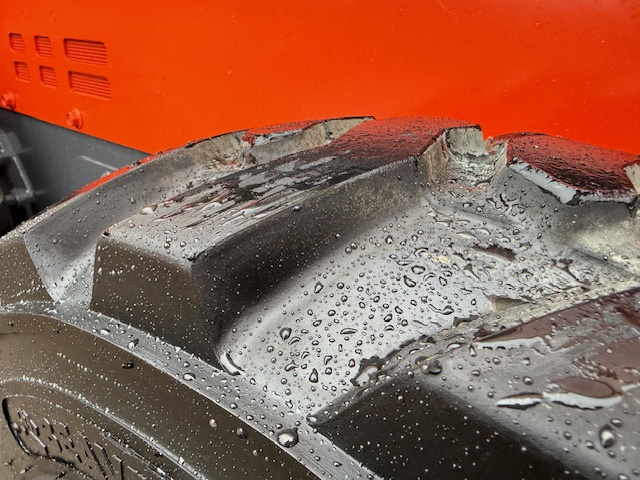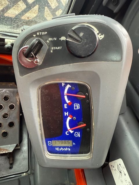 Its operating weight is approximately 7,319 lbs, and it has a standard hydraulic flow of 18 gpm (gallons per minute), machine has a ground clearance of 7.6 inches and a maximum travel speed of 11.1 mph in high gear.