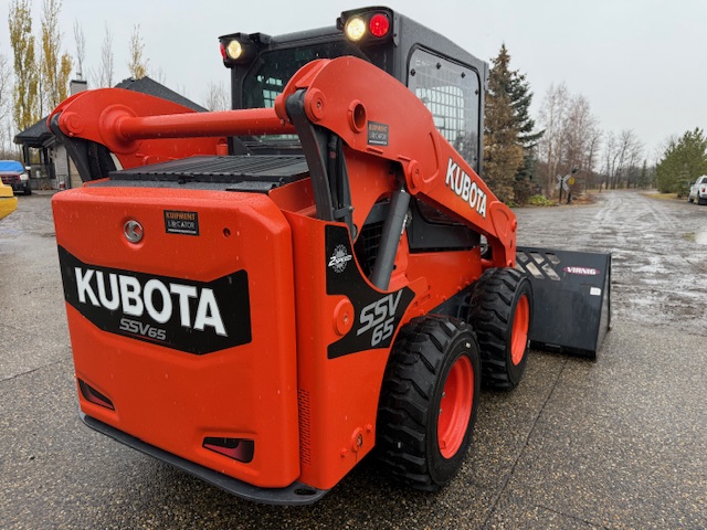 The Kubota SSV65 skid steer loader features a