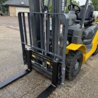 The forklift is equipped with 48″ Class II forks and a side shift attachment.