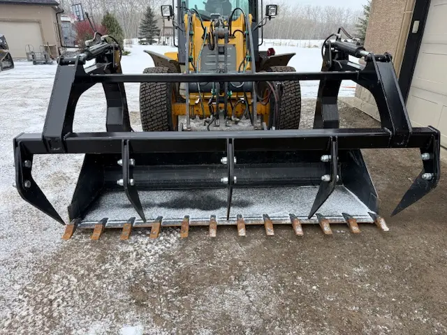 96 Inch Wide Skid Steer Quick Attach 12 Heavy Duty Pin On Digging Teeth Spring Loaded Hose Holder Dual Cylinders C/w Hoses And Flat Face Couplers Made In Canada Very Nice Condition